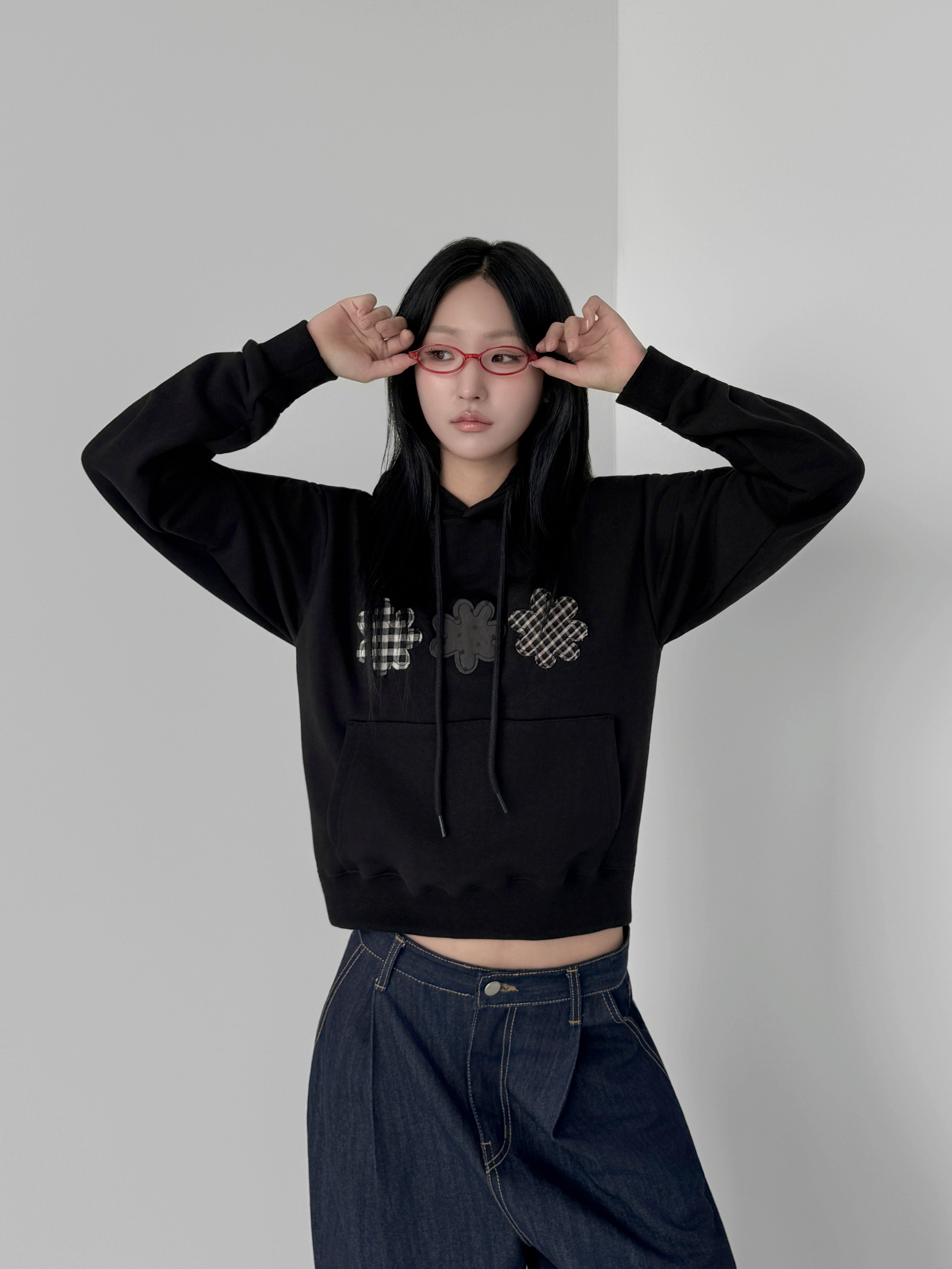 レディース スリーフラワー クロップフーディ